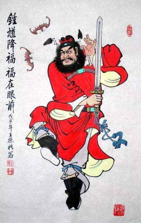 鐘馗捉鬼,是端午節習俗。在江淮地區,家家都懸鐘馗像,用以鎮宅驅邪。唐明皇開(kāi)元,自驪山講武回宮,瘧疾大發(fā),夢(mèng)見(jiàn)二鬼,一大一小,小鬼穿大紅無(wú)襠褲,偷楊貴妃之香囊和明皇的玉笛,繞殿而跑。大鬼則穿藍袍戴帽,捉住小鬼,挖掉其眼睛,一口吞下。明皇喝問(wèn),大鬼奏曰:臣姓鐘馗,即武舉不第,愿為陛下除妖魔,明皇醒后,瘧疾痊愈,于是令畫(huà)工吳道子,照夢(mèng)中所見(jiàn)畫(huà)成鐘馗捉鬼之畫(huà)像,通令天下于端午時(shí),一律張貼,以驅邪魔。